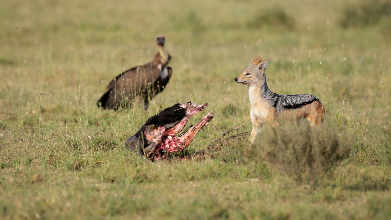 What makes the jackal fascinating to watch on safari is its relationship with larger predators. Jackals are among the first scavengers to appear at a lion or hyena kill, darting in to grab scraps with a speed and nerve that seems reckless but is carefully calculated. They know exactly how close they can get before the larger animal charges, and they rarely miscalculate. Their vocalisations are distinctive. The wailing howl of a jackal pair at dusk is one of the signature sounds of the African bush and carries across kilometres. They use different calls for territorial defence, pup contact, alarm and rallying the pair. Black-backed jackals also play an important ecological role as seed dispersers. The wild fruits they eat pass through their digestive systems intact and are deposited across their territory, contributing to plant regeneration across the savannah.