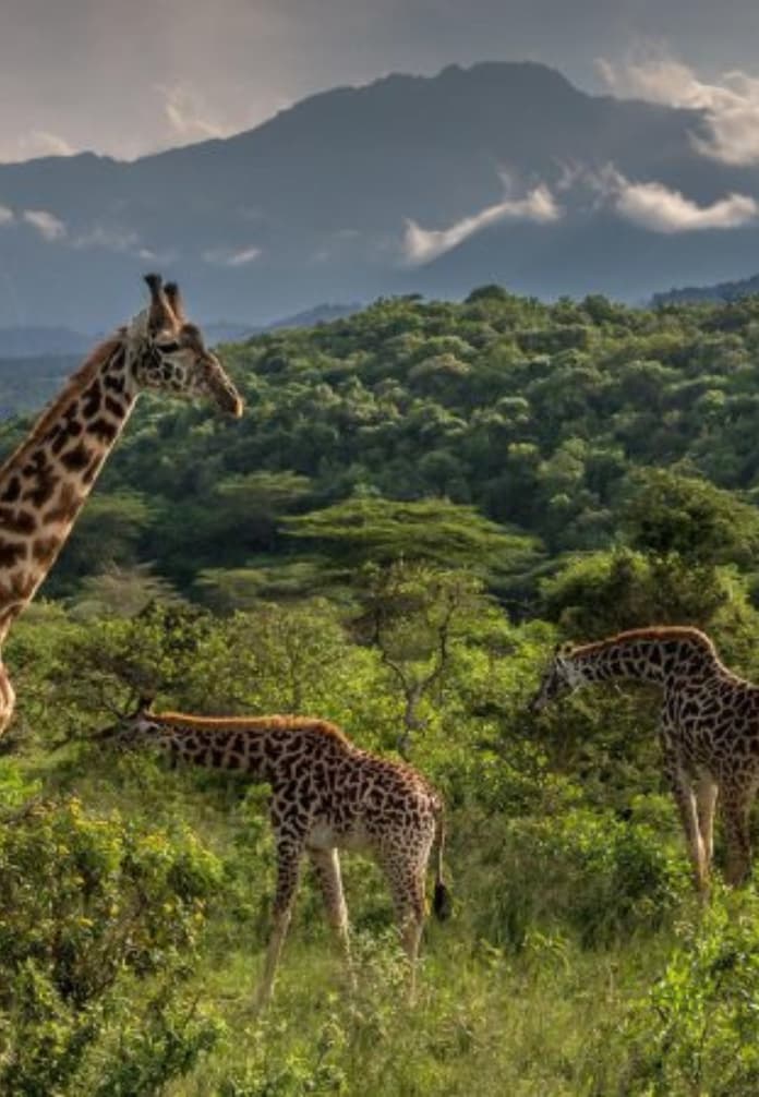 Dense riverine forest, thick bush and montane woodland