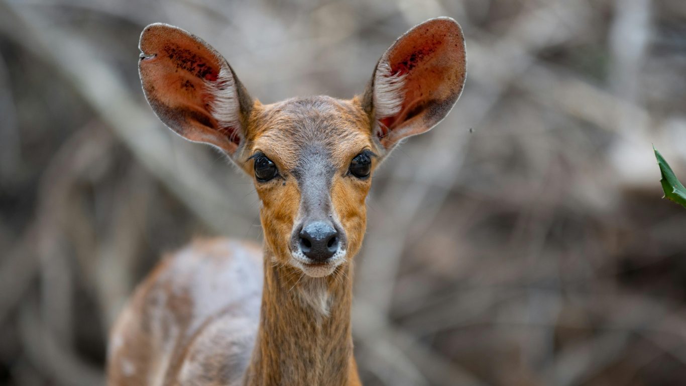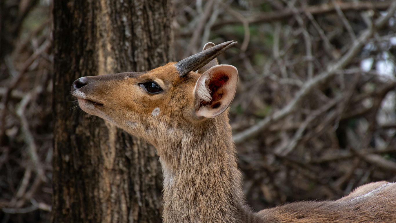 They are mixed feeders, browsing on leaves, shoots, flowers and fallen fruit in the understorey of the forest. They also take fresh grass at forest edges in the early morning when dew is still on the ground. Their food sources are all within dense cover, which means they rarely need to expose themselves on open ground. Despite their shy nature, bushbuck can be surprisingly aggressive when cornered. Males have been known to injure hunting dogs and even humans with their sharp twisted horns. They are one of the few antelopes that will turn and fight rather than flee when escape routes are blocked. On the northern circuit, the best chances for bushbuck come in Arusha National Park's montane forest, around the forested craters of Ngorongoro, and in the riverine strips of Lake Manyara. Tarangire holds them in the thicker bush along the river but sightings are less predictable.